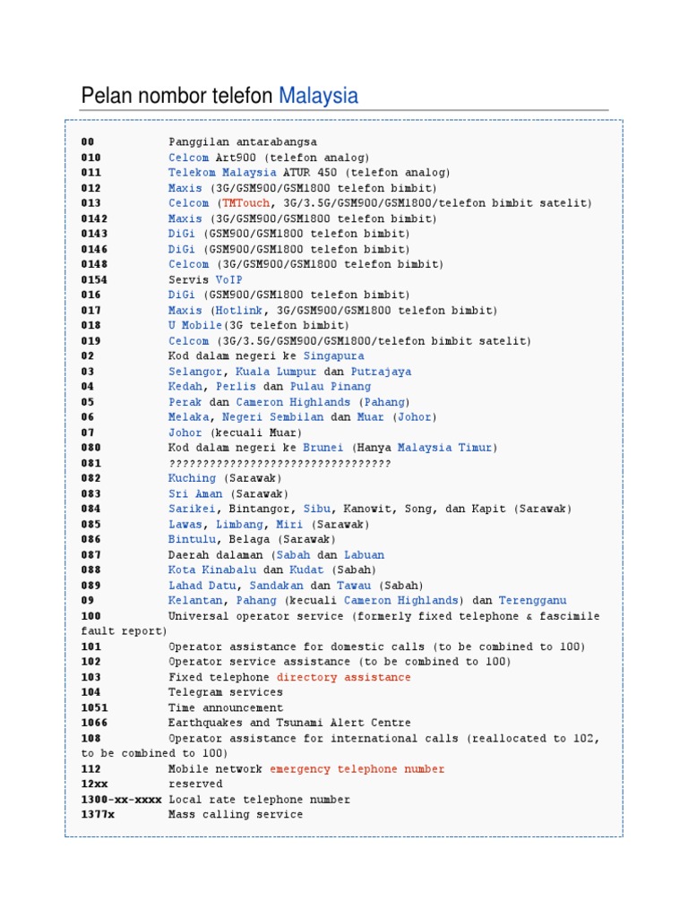 Kod Nombor Telefon Mengikut Negeri Di Malaysia Savannagwf